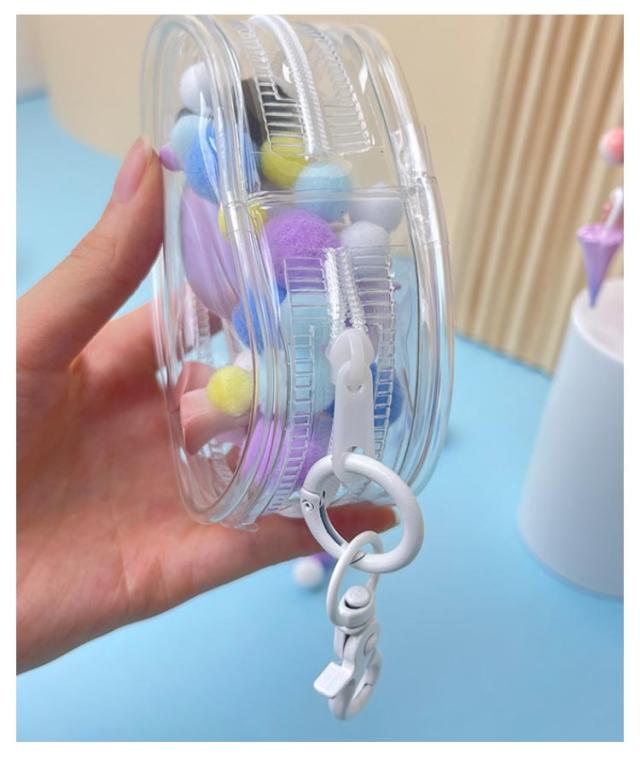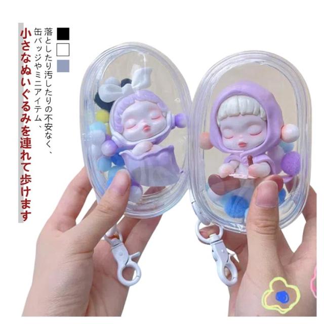 | ミニポンポン付き、マスコットやぬいぐるみを持ち運びできるミニクリアポーチ! 落としたり汚したりの不安なく、缶バッジやミニアイテム、小さなぬいぐるみを連れて歩けます | |