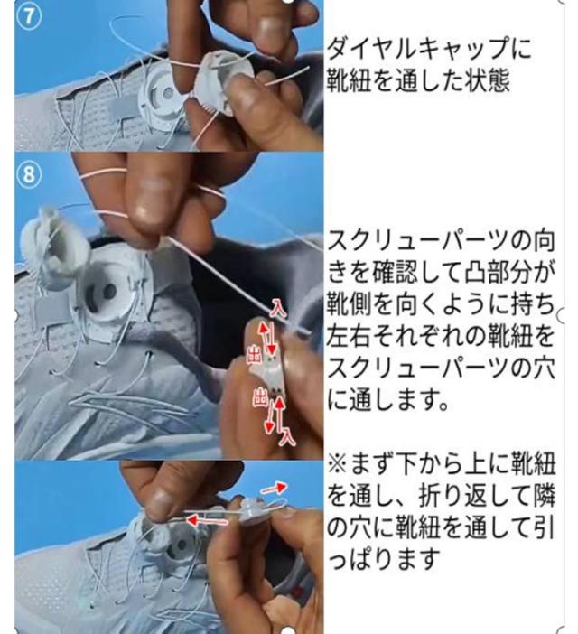 | 結ばない靴紐・ダイヤル式靴紐 ●脱ぎ履きがわずか3秒で完了 忙しい朝でも嬉しい! どんな時も、ダイヤル操作で脱ぎ履きが3秒で完了します。 ●ほどける心配がありません。 ダイヤルで靴紐をしっかり固定するので、ほどける心配はありません。 ●お気に入りの一足に。 スニーカー、ランニングシューズなどあらゆる靴に取り付けが可能です。 ●お子様の靴にも使用可能 大人の靴はもちろん、靴紐の長さを調整するだけで、お子様の靴にもご使用頂けます。 ●シュレパスダイヤルタイプはどんな時も活躍します。 ・アウトドア/キャンプ/BBQ/ ・スポーツ/ランニング/ウォーキング/トレーニング ・ビジネス/出勤時/通学時 ・普段使い/ショッピング/お買い物など | |