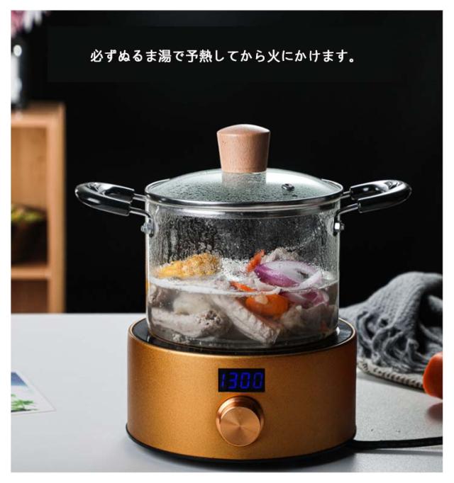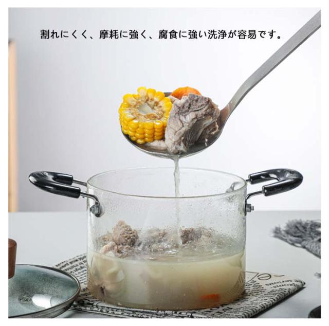| スープを煮る、ミルクを温める、お粥を作るなど、さまざまなシーンに対応。 透明なパン本体だから、食材の調理状況が一目でわかり、火加減がしやすい。 割れにくく、摩耗に強く、腐食に強い洗浄が容易です。 クリスタルガラスの管材加工で、表面が滑らかです。 必ずぬるま湯で予熱してから火にかけます。 ホウ素の高いガラスは熱に強いですが、火を通して物を煮る時は注意して使います。 注意:電磁調理器は使用しないでください。直火で使用できます;電気セラミックストーブで使用できます。 | |