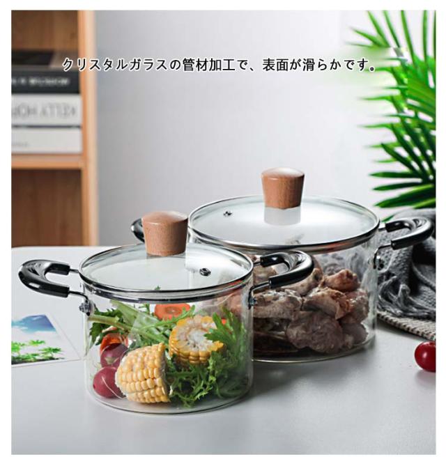 ミニパン ガラスパン ガラスポット ミルクパン 片手鍋 2L 1.5L 蓋付きガラス鍋 ミニ鍋 ミルクパン ガラス製 クリア 透明 北欧風 ソースパン 台所用品 透明 耐熱 キッチン 調理器具 多機能