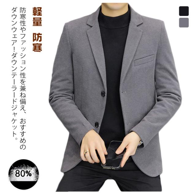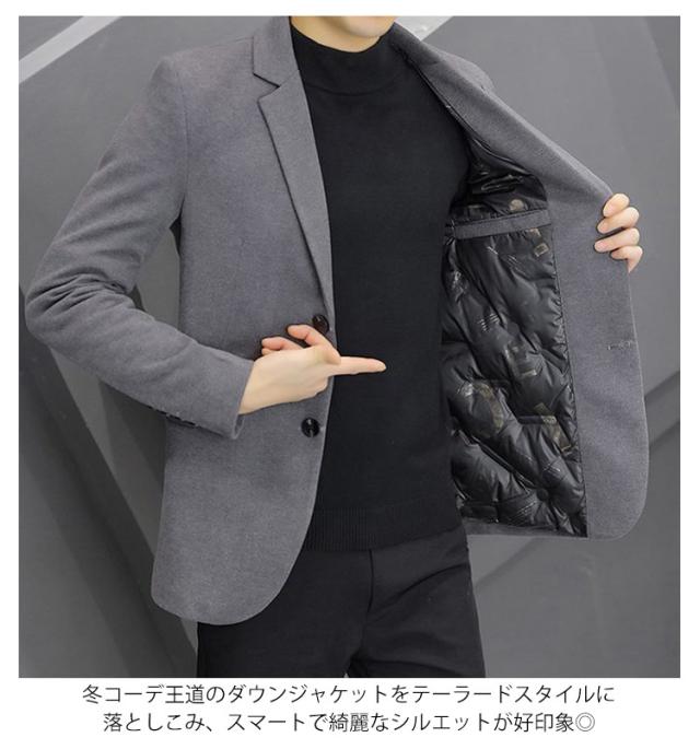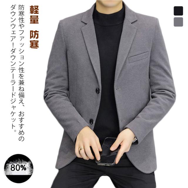 ダウンコート ダウンジャケット テーラードジャケット 紳士 スーツ ダウンジャケット ロングコート コート アウター スーツジャケット 2つボタン 軽量 防寒 防寒着 保温 暖か メンズ ビジネス カジュアル 通勤 秋服 秋 冬 冬服 シンプル 無地 秋冬 オフィス
