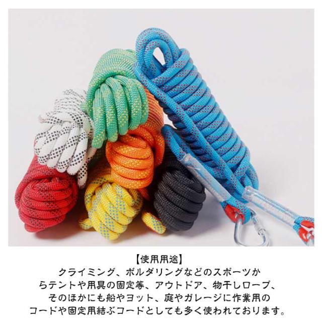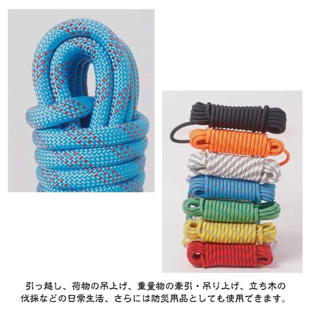 | 【10M 15M 20M】【多用途ロープ】【8mm 10mm】 登山、ボルダリング、荷物の吊り上げなど様々な用途にご使用になれます。 弾力性に優れた素材で丈夫でコンパクトなアウトドア用ロープです。 アウトドア、高所作業、災害時等マルチなシーンで活躍します! 丈夫で撥水性、耐熱性、耐摩耗性に優れた多目的ロープです。 丈夫な2つのカラビナ付きで両端についており、アイデア次第で様々な利用方法が可能に。 【使用用途】 クライミング、ボルダリングなどのスポーツからテントや用具の固定等、アウトドア、物干しロープ、そのほかにも船やヨット、庭やガレージに作業用のコードや固定用結ぶコードとしても多く使われております。引っ越し、荷物の吊上げ、重量物の牽引・吊り上げ、立ち木の伐採などの日常生活、さらには防災用品としても使用できます。 | |
