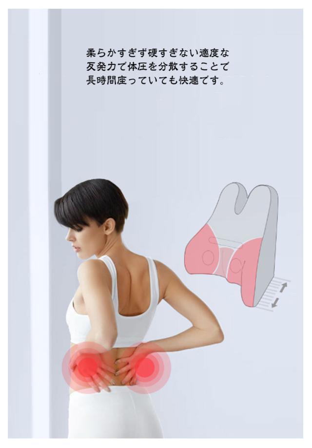 | 【商品名】腰当てクッション 【サイズ】サイズ表 【素材】中材:低反発メモリーフォーム 【特徴】 人間工学に基づいた設計された腰クッション。 頭から腰にかけてのS字カーブをしっかり支えます。 背筋が自然に伸びることで腰への負担を減らします。 低反発メモリーフォーム素材を採用。柔らかすぎず硬すぎない適度な反発力で体圧を分散することで長時間座っていても快適です。 日々のオフィスワークや長距離運転などが多い方、テレワークの方など快適に座りたい方にオススメです。 椅子とズレにくいベルト付き◎ 中央の突起が背中や腰に心地よい刺激を与えてくれます。 | |
