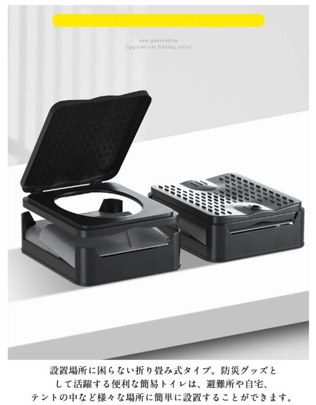 | 【ポータブル式トイレ】トイレの蓋は丸いホールの設計で、蓋が開けやすくて、匂いが外へ漏らさないように防止可能。両側に取っ手があり、より持ち運びやすいです。高品質のPP材料で作られ、より耐摩耗、強度も更に高めました。 【耐久性・軽量・コンパクト】素材は耐久性に優れたPP素材ですので、大人の使用ももちろん可能です。耐荷重150kgとしていますが、大人二人が乗っても大丈夫です。 【水洗いOK】水洗い対応でいつでも清潔な状態で使用できるポータブルトイレは、付属の排泄物用袋をセットすることで誰でも簡単に利用可能。 【緊急事態に最適】さまざまな緊急事態で使用できます!折りたたみ式簡易トイレ虚弱な高齢者や不便な患者、子供、妊婦などあらゆる人に適しており,トイレにすぐ行けない場面では非常にポータブルトイレが役に立ちます。 【防災対策・どこでも設置可能】台風、地震、断水、停電、災害、渋滞、台風、アウトドア、キャンプ、旅行、登山、ドライブ、高速道路など緊急用としていつでも携帯できるトイレです。設置場所に困らない折り畳み式タイプ。防災グッズとして活躍する便利な簡易トイレは、避難所や自宅、テントの中など様々な場所に簡単に設置することができます。 | |