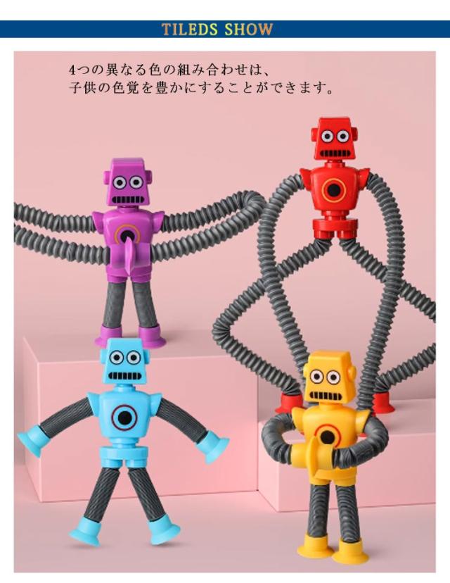 2歳 光る 吸盤 知育玩具 伸縮式 壁も使える 4個セット 男の子 女の子 5歳 誕生日 プレゼント ロボット 知育 玩具 6歳 1歳 子供 お風呂 4歳 おもちゃ 3歳 モンテッソーリ 立体パズル 室内 指先の知育 遊び 柔らかい ごっこ遊び