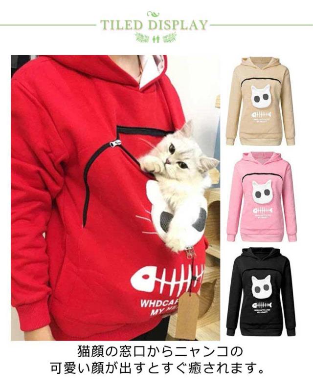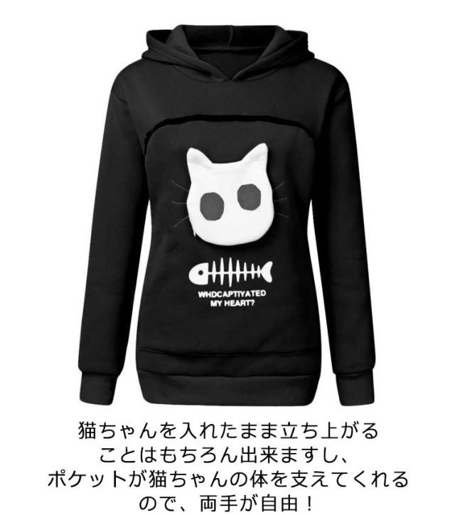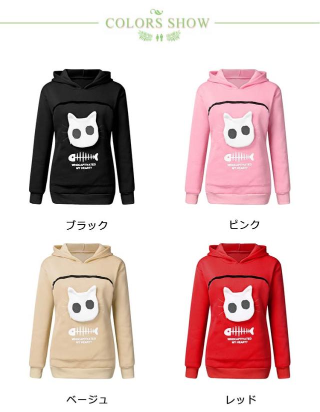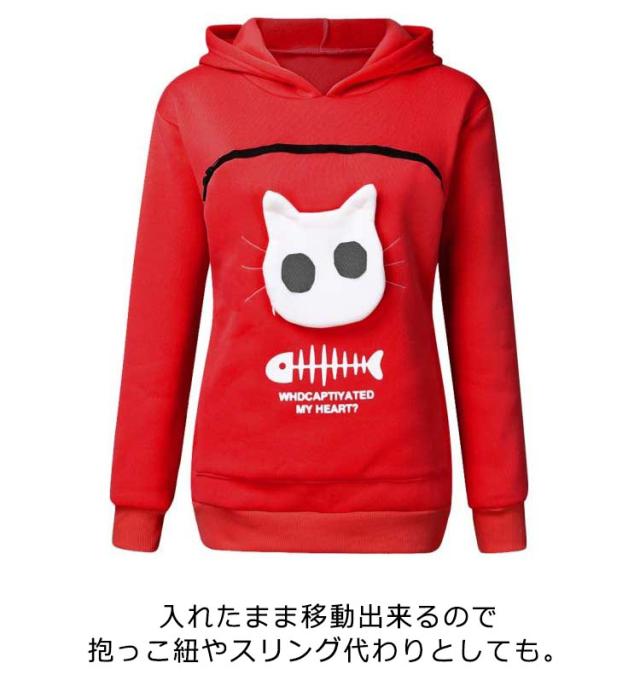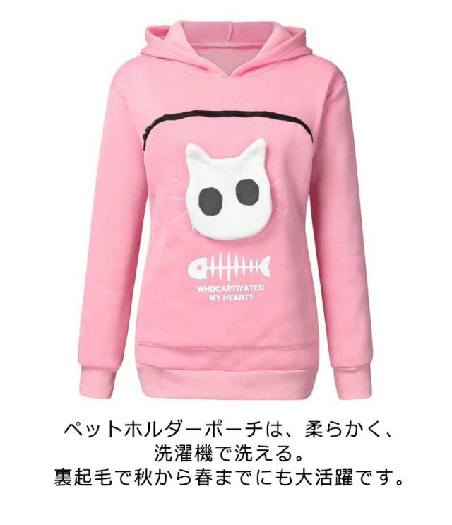 グレー パーカー カンガルー 抱っこ フリース 猫 ポケット 犬 小動物 レディース ブラック トレーナー フード付き 猫 トップス メンズ パーカー 誕生日 プレゼント/にゃんパーカー 猫も入れるパーカー トレーナー あったか 防寒 小動物