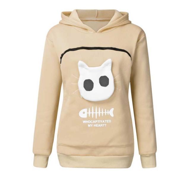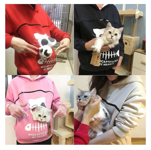 | 猫や犬(小型犬)、小さい動物を入れるためのパーカーです☆ 猫顔の窓口からニャンコの可愛い顔が出すとすぐ癒されます。 入れたまま移動出来るので抱っこ紐やスリング代わりとしても。 猫ちゃんを入れたまま立ち上がることはもちろん出来ますし、ポケットが猫ちゃんの体を支えてくれるので、両手が自由! ペットホルダーポーチは、柔らかく、洗濯機で洗える。 裏起毛で秋から春までにも大活躍です。 | |