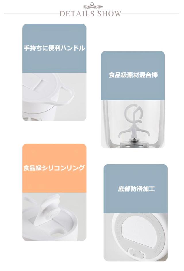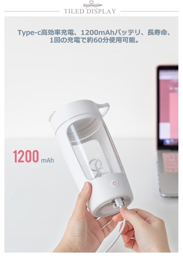 | サイズについての説明 | サイズ:121*90*196mm 容量:650ml 材料:ABS/PP/Tritan 重量:329g バッテリー容量:1200mAh モーター回転数:7000RPM 充電方式:Type-c充電 |