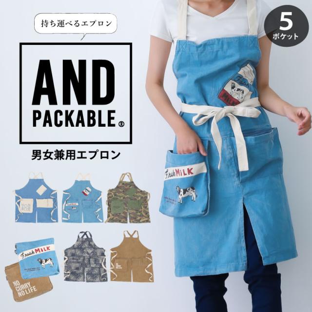 【メール便1枚のみ送料無料・ゆうパケット】5ポケットエプロン【AND PACKABLE】ユニセックス ミルク カモフラ テクノプライム プレゼント【P】【M】