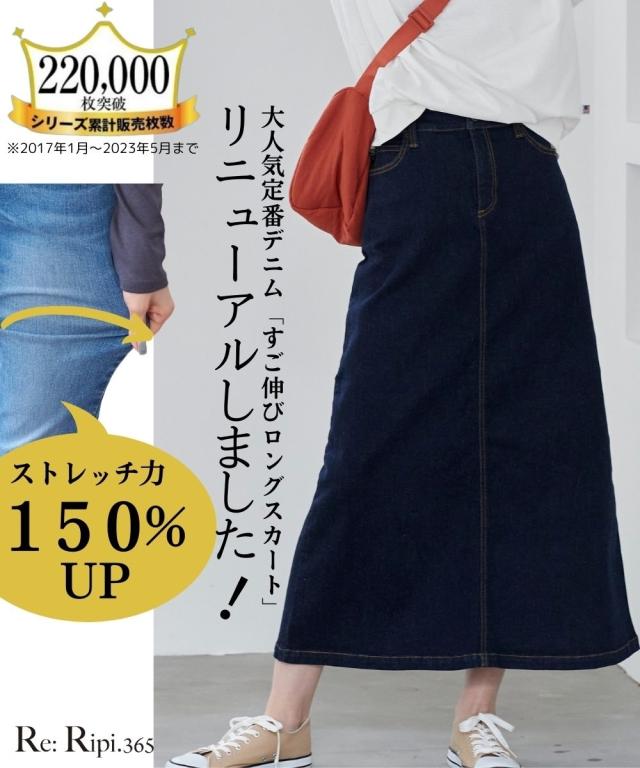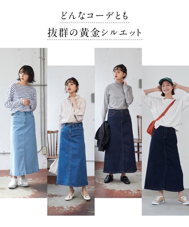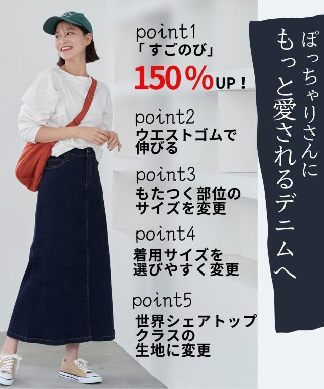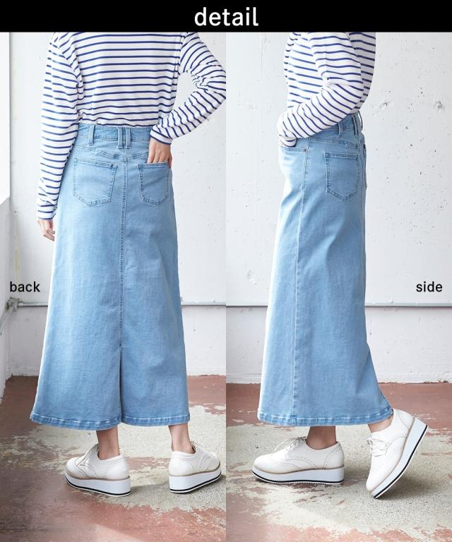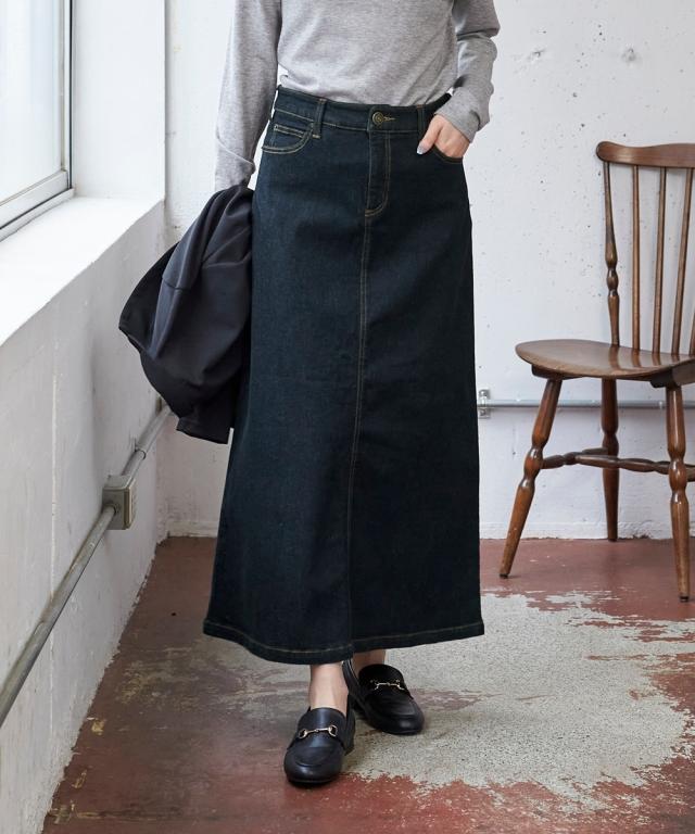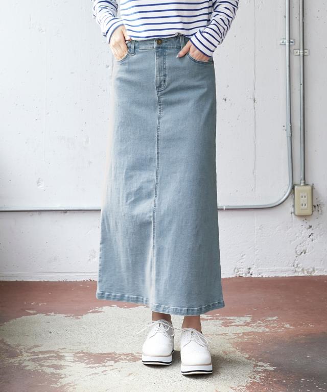大きいサイズ すごのびストレッチデニムロングスカート(ゆったりヒップ)
