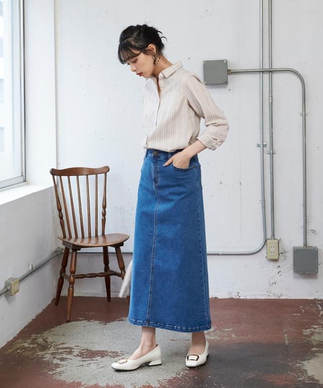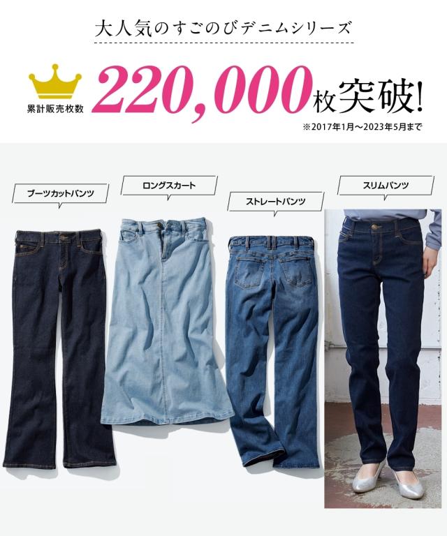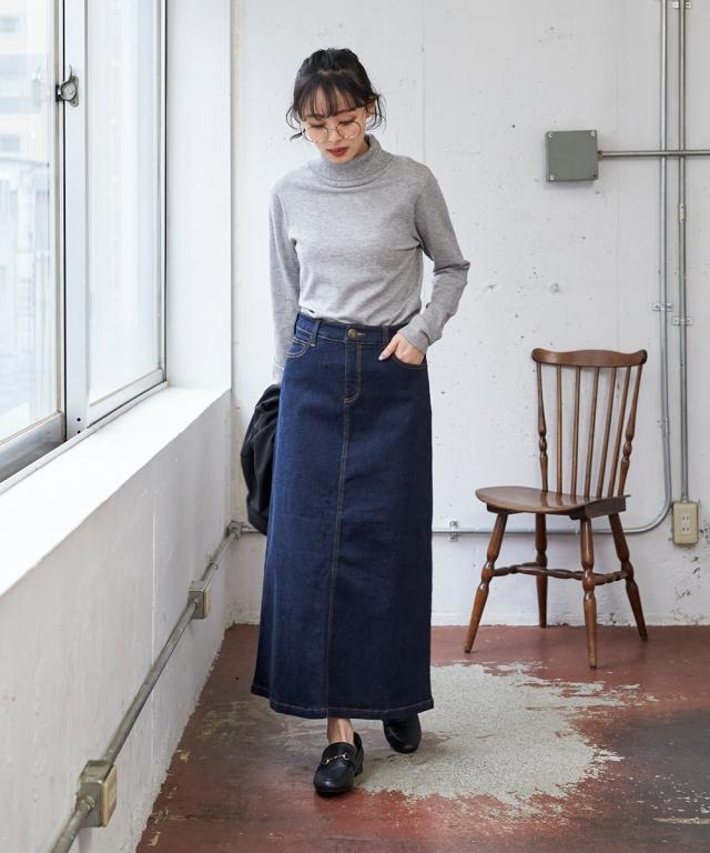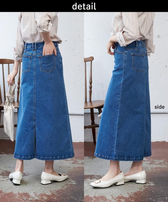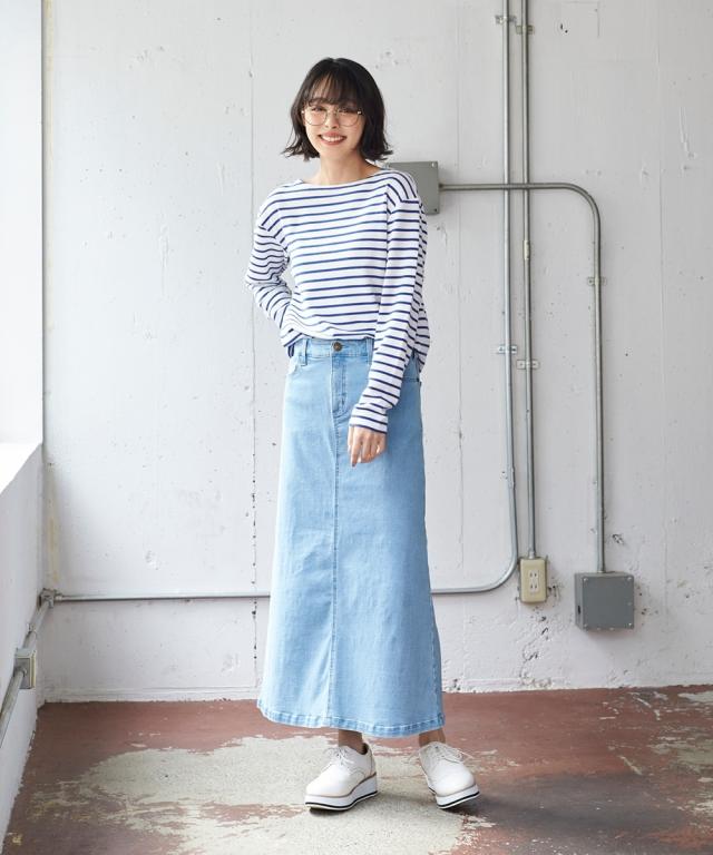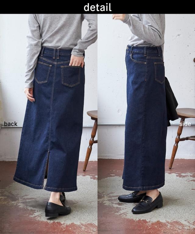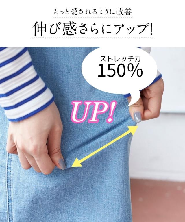 大きいサイズ すごのびストレッチデニムロングスカート(ゆったりヒップ)