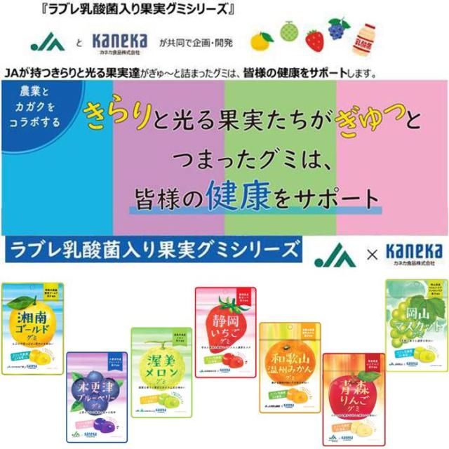 お試し 8種類各1袋 8袋セット販売 期間限定 カネカ食品 JA 共同開発 グミ 乳酸菌入り 湘南ゴールド 木更津ブルーベリー 渥美メロン 静岡いちご 和歌山温州みかん 青森りんご 岡山マスカット 北海道ハスカップ 果汁入り ラブレ乳酸菌入り 24億個 二重構造 新たな面白い食感