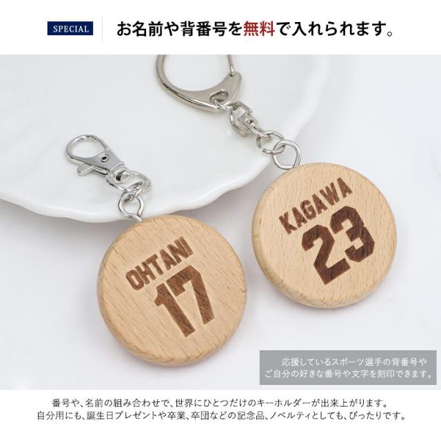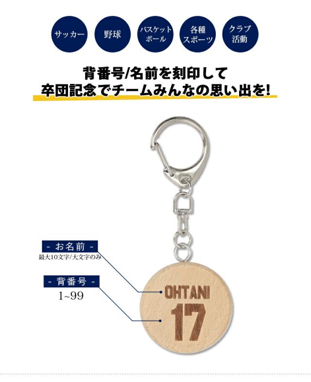 背番号 キーホルダー キーリング 刻印 木製 ウッド スポーツ 選手 ナスカン カニカン 名入れ 刻印無料 子供 記念 バックナンバー aruon 名入れ工房