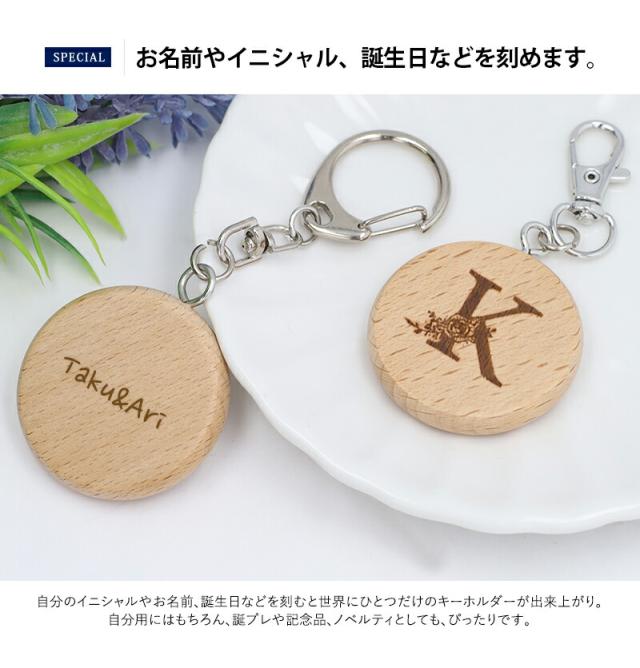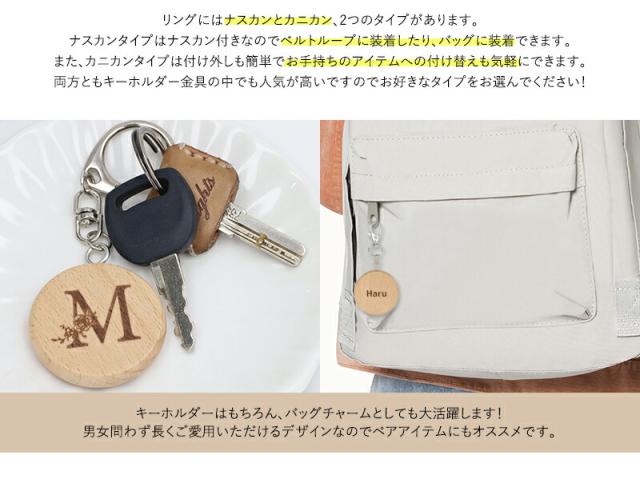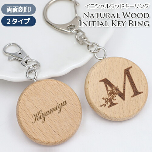 イニシャル キーホルダー キーリング 両面刻印 名入れギフト グッズ イニシャル刻印 刻印 プチギフト 木製 ウッド ナスカン カニカン 名入れ 刻印無料 aruon 名入れ工房