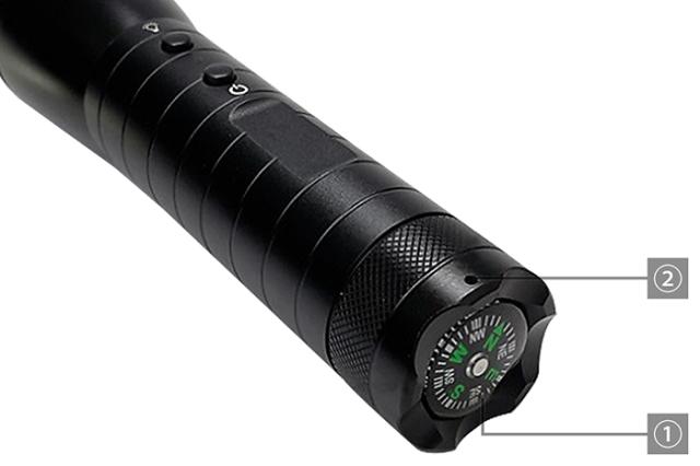 ①コンパス(使用できません) ②ストラップ取付穴