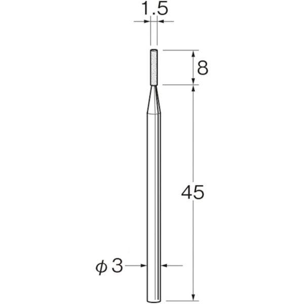 ・粒度(#):320・外径(mm):1.5・幅(mm):8・軸径(mm):3・軸長(mm):45・最高使用回転数(rpm):60000・砥粒:ST白・全長(mm):53・色:白・結合剤:V