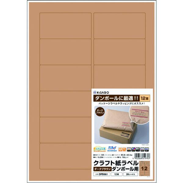 ヒサゴ(株) ヒサゴ クラフト紙ラベル ダークブラウン ダンボール用 A4 12面 OPD861-TN WO店