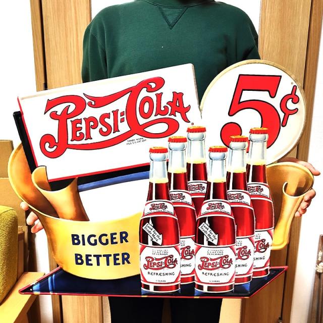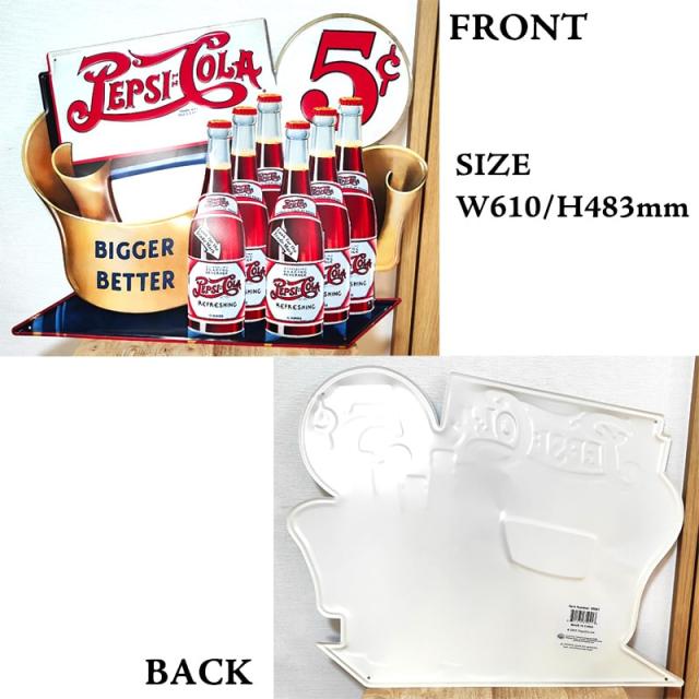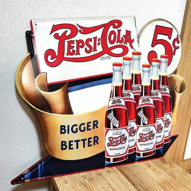 「ダイカットエンボスメタルサイン PEPSI COLA 5¢ BIGGER BETTER」