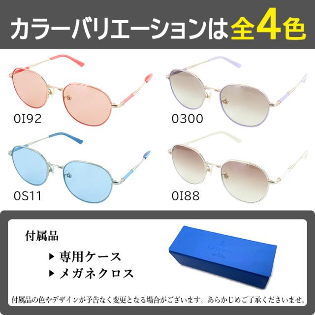 | SLB014J 0I92 フレームカラー:シャイニーコッパ—ゴールド レンズカラー:オレンジブラウン SLB014J 0300 フレームカラー:シャイニーローズゴールド レンズカラー:ピンクベージュグラデーション SLB014J 0S11 フレームカラー:シャイニーライトグレー レンズカラー:ライトブルー SLB014J 0I88 フレームカラー:シャイニーホワイトゴールド レンズカラー:オレンジブラウングラデーション | ●素材 フレーム材質:ステンレス テンプル材質:ステンレス レンズ材質:プラスチック ●可視光線透過率 0I92:60% 0300:30% 0S11:60% 0I88:30% ●紫外線透過率 1.0%以下(UVカット99%以上) |
