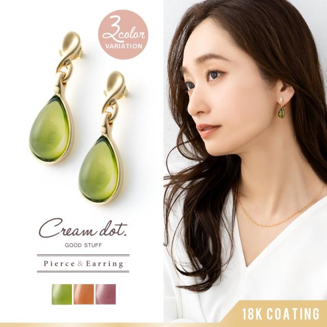 透明感のあるドロップストーンが耳元で煌めくピアス/イヤリング。ひねりを加えたメタルとのコンビがさりげなくも高見えするひと品。お顔周りに華やかな彩りをプラスしてくれるアイテムです。