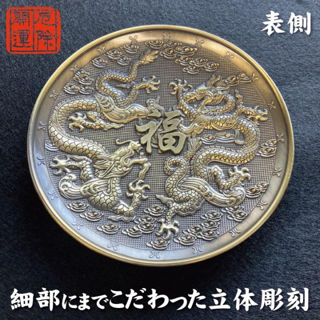 双龍 浄化皿 さざれ水晶付 約10cm 辰年 開運 ドラゴン 金運 お守り パワーストーン 水晶 盛り塩 お香受け皿 真鍮製 風水 さざれ皿 オシャレ