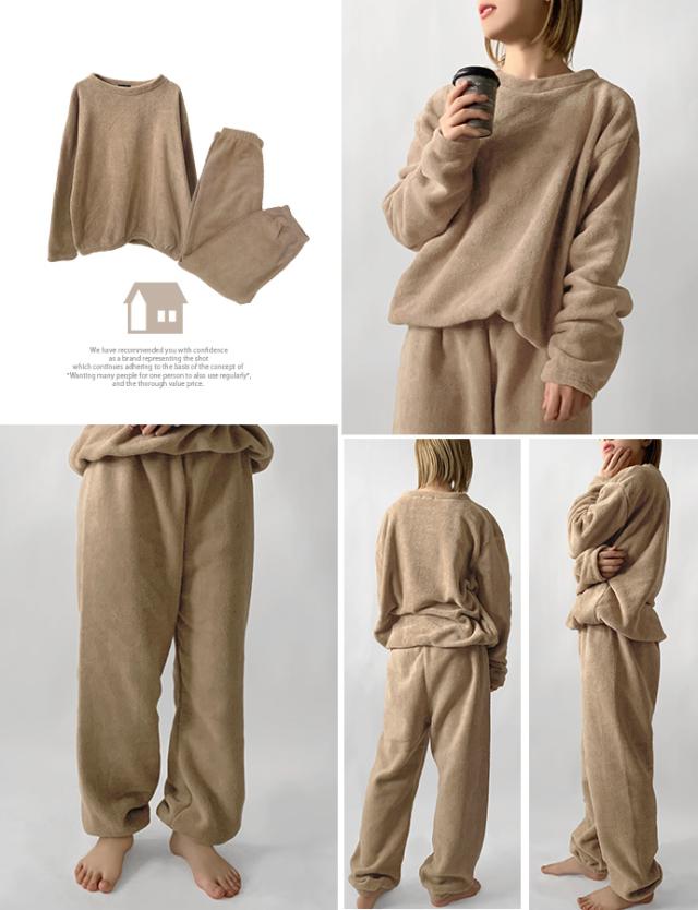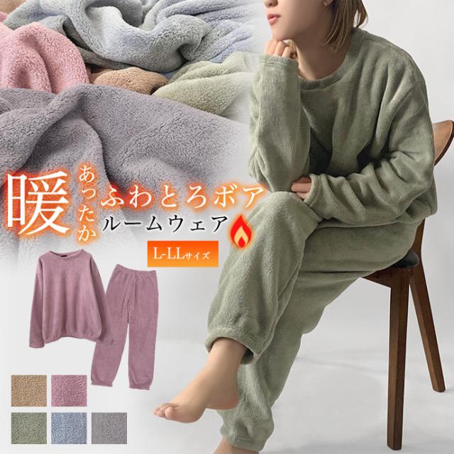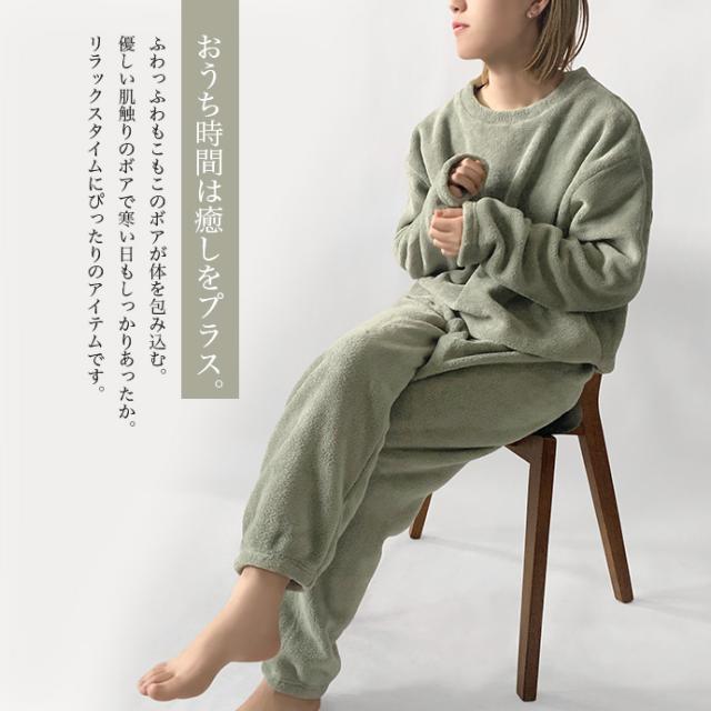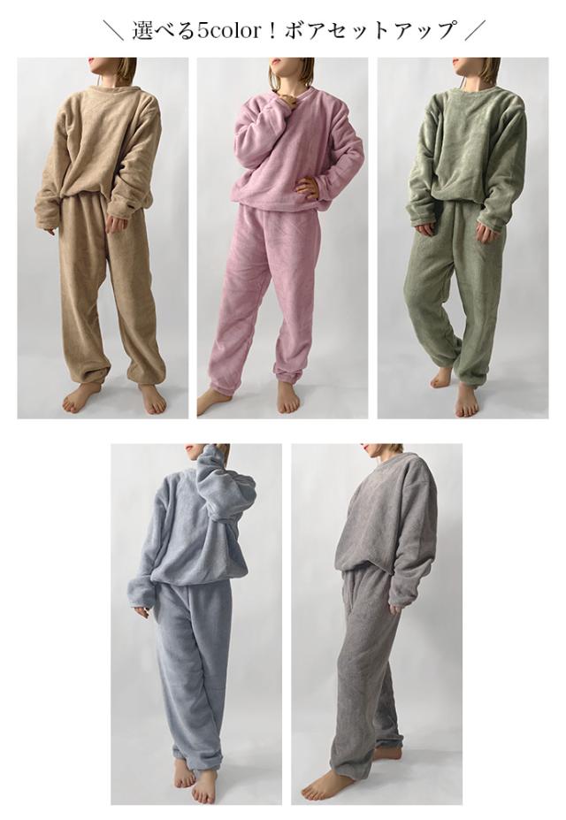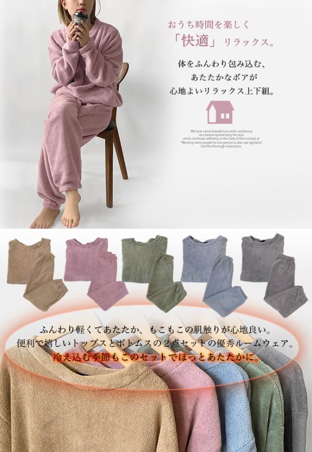セットアップ 上下組 上下セット 部屋着 ルームウェア パジャマ トレーナー トップス パンツ ロングパンツ スボン おうち時間 ボア ウエストゴム あったか 防寒