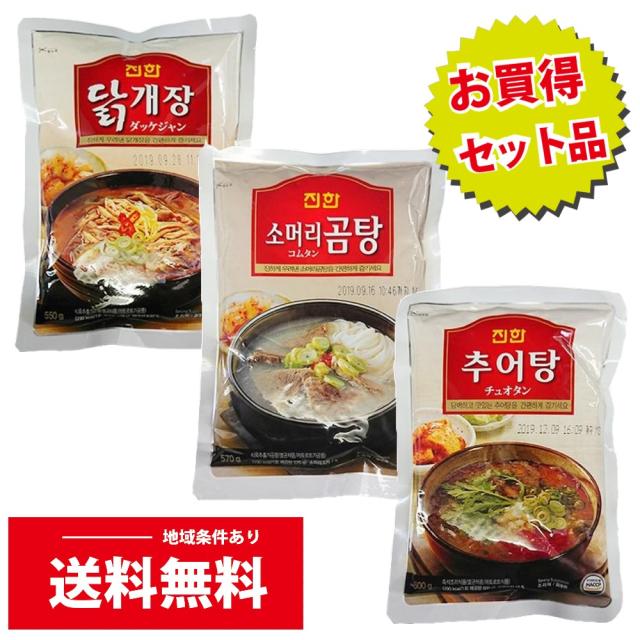 韓国レトルト食品 3種セット:チュオタン 600gx1個、ソモリコムタン 570gx1個、ダッケジャン 600gx1個(1861、1878,1868)韓国食品/レトルトスープ/簡単料理/韓国料理/スープ/ジンハン/真漢