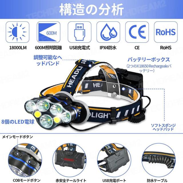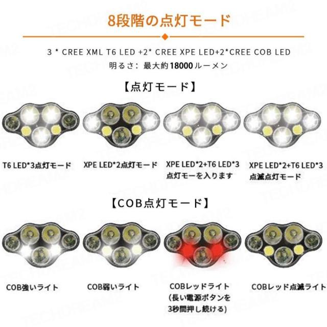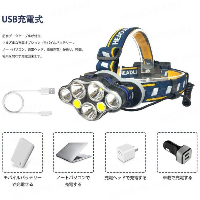 ヘッドライト ヘッドランプ 眼ライト 7LED usb充電式 大電力 8モード 高輝度 明るい 小型軽量 防水 防塵 作業灯 登山 釣り ランニング 夜釣り
