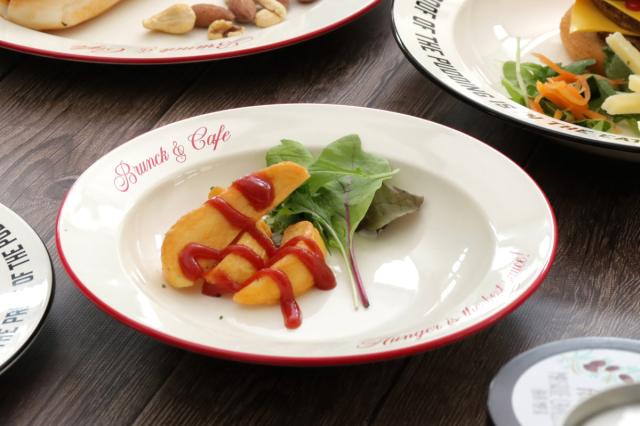 バーガーショップで出てきそうな樹脂製のカフェ風クーププレートです。深さがあり、サラダの取り分け皿などに丁度いいサイズです。樹脂製なので割れにくく、軽いのが特徴です。