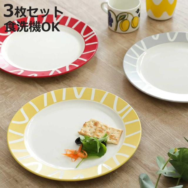 ●華やかなカラーでテーブルが明るくなるプレート3枚セットです。