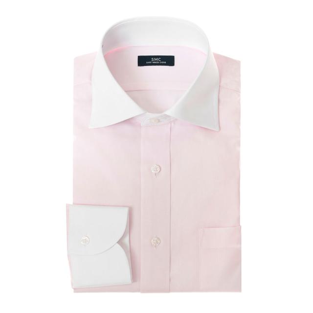 SMC 形態安定加工 就活 冠婚葬祭 春夏秋冬 SHIRT MAKER CHOYAセミワイドカラー ピンク×ホワイトのクレリックシャツコーディネートにアクセントを加えたいときにオススメ適度なハリ感と通気性を備えており通年使いやすい織物です肌触りの良い綿100%&すっきりしたシルエットで着心地の良い立体裁断きちんと見えする端正な衿型でビジネスシーンにぴったりです