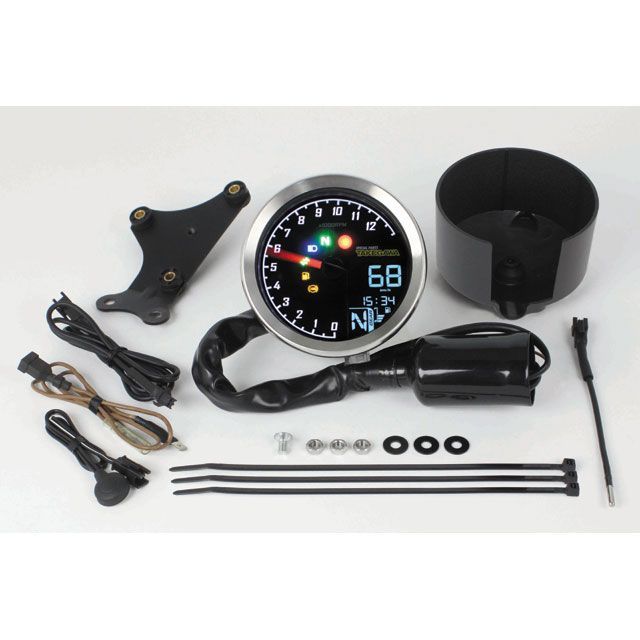 速度、回転数、ギアポジション、温度計、燃料系、時刻、バッテリー電圧表示やタイヤ外径補正、バックライト色変更等、非常に多くの機能を搭載!!