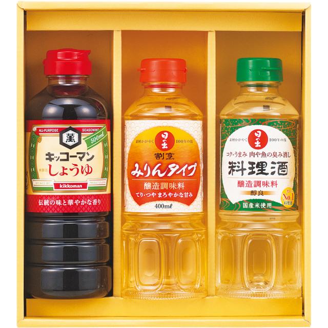 ■商品内容:キッコーマンこいくちしょうゆ500ml・日の出(料理酒・割烹みりんタイプ)各400ml