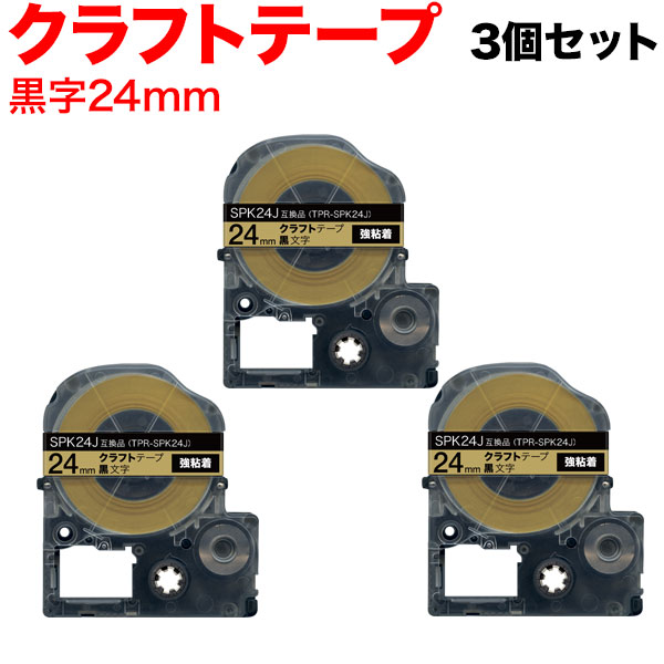 キングジム用 テプラ PRO 互換 テープカートリッジ SPK24J クラフトラベル 強粘着 3個セット 【メール送料無料】