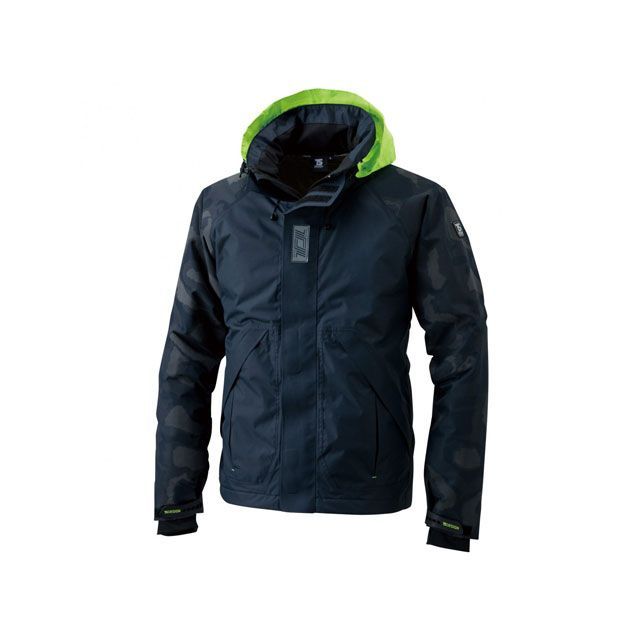 蛍光カラー+反射材・反射プリントによる高視認性。高透湿性裏アルミ素材メガヒートを使用した防水防寒ジャケット。