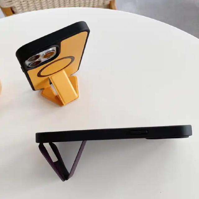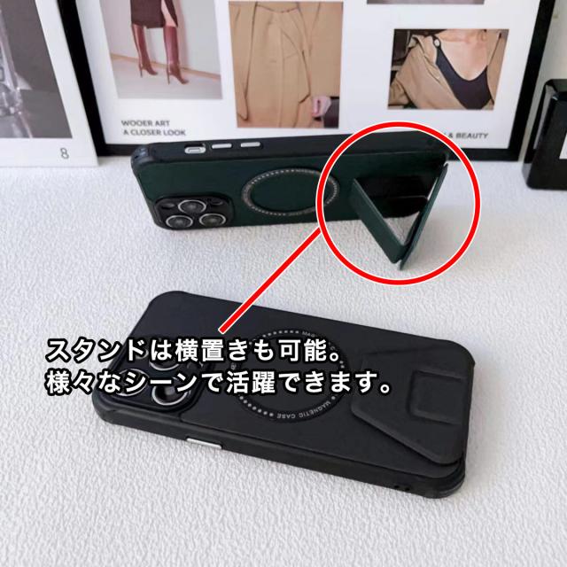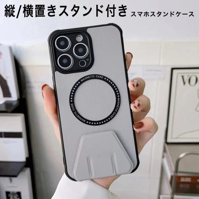 縦&横置き可能!様々なシーンで活躍するスマホスタンド付きケースが登場! iPhone15シリーズに対応した、縦&横置きスタンド付きスマホケースが登場です。 背面にはmagsafe製品に対応したメタルリングが内蔵されているため、様々なmagsafe製品をご使用いただけます。※マグネット機能は付いておりません。 スタンド部分は折り畳み式になっているのでコンパクトになっています。 さらに、スタンド部分がマグネットになっているので、ステンレス製などの机の上なら、ずれる心配もありません。 |