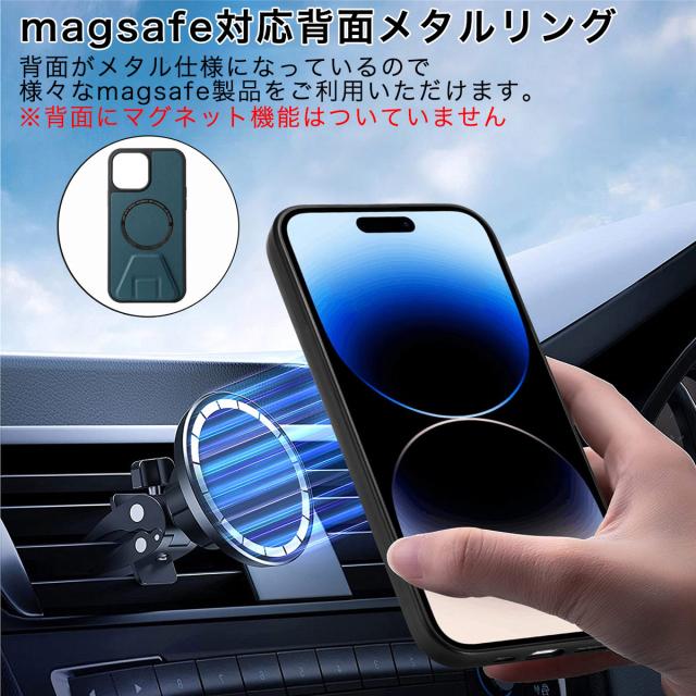 背面にはmagsafe製品に対応したメタルリングが内蔵されているため、様々なmagsafe製品をご使用いただけます。※マグネット機能は付いておりません。