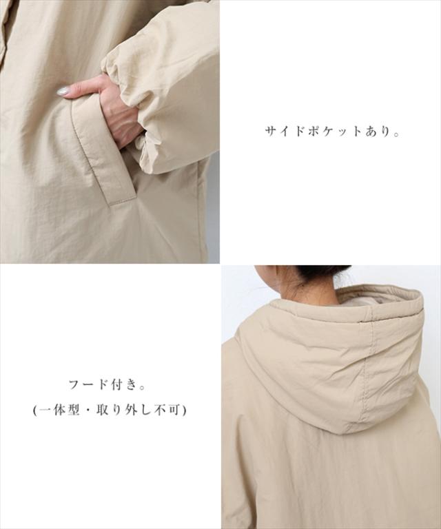 フード付き。(取り外し不可の一体型タイプ)袖口はゴム仕様でしっかり防寒!