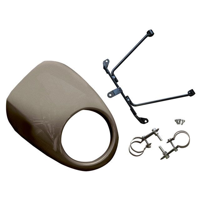 ビキニカウル本体の取り付けステーはシンプルな構造とし軽量な丸棒と板材を曲げて溶接加工しています。素材にはスチールを採用しウレタン塗装で仕上げることで錆が発生しにくくしています。