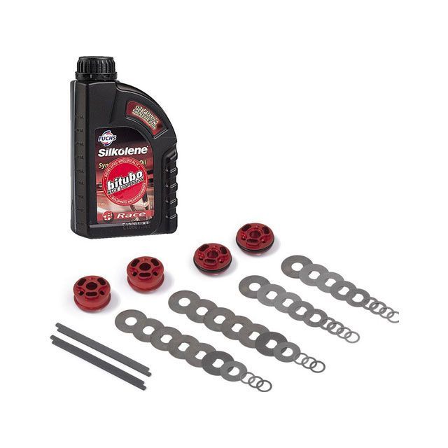 K-Fork Fork Valve KitsTransform your original fork into a high-performance suspension unitIncrease front stability, improves braking characteristics and gives better handling on curvesKits include 7075 billet aluminum pistons, fluxed passage holes, pyramid shims, sealing bands and low-viscosity oil for consistent performanceBillet Ergal pistons for rebound and compression.Fluxing holes with centesimal tolerances.Pyramidal shims pack with degressive and linear damping.Sealing bands with high sliding performance.Synthetic oil at very low viscosity, developed in collaboration with FUCHS-Silkolene for a perfect consistency of performance.Detailed instructions with attached shims chart