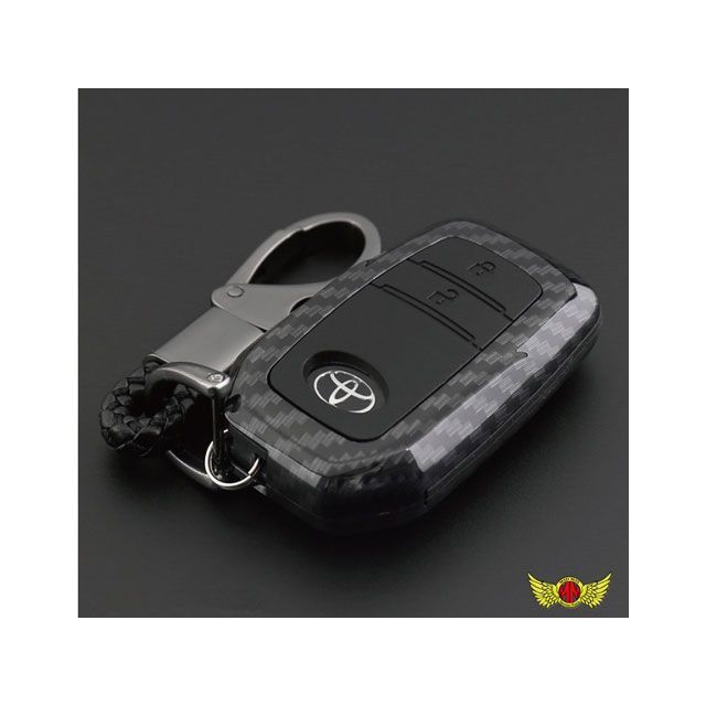トヨタ車専用 カーボン調 スマートキーケース ランドクルーザー200/ハイラックス 2ボタン式 TYPE3 キーホルダー付き ブラック。
