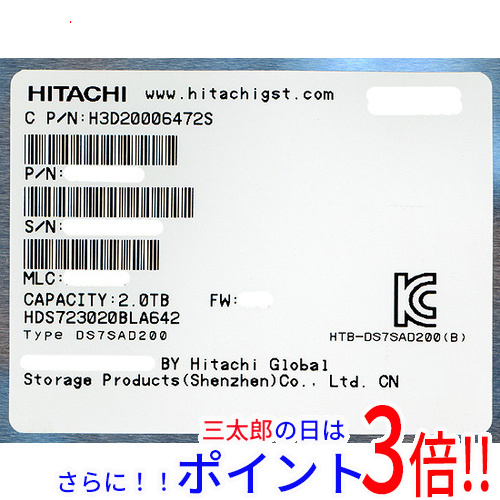 【1日と三太郎の日はポイント3倍!!】【新品】送料無料 日立 HITACHI製HDD HDS723020BLA642 2TB SATA600 7200 3.5インチ
