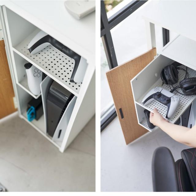 リビングなどで散らかりがちなゲーム機やコントローラーなどを、隠しながら美しく収納できる大容量のラック。お部屋もすっきりし、お掃除もスムーズになります。