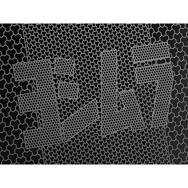 エッチング加工による高精度のhexagonal(ヘキサゴナル=亀甲)メッシュパターンを採用。ヨシムラ独自の「Yライン」を描く美しい網目の中央にはシンプルで主張しすぎない デザインの「ヨシムラ」ロゴを配置。ドレスアップ要素と実用性を備えています。