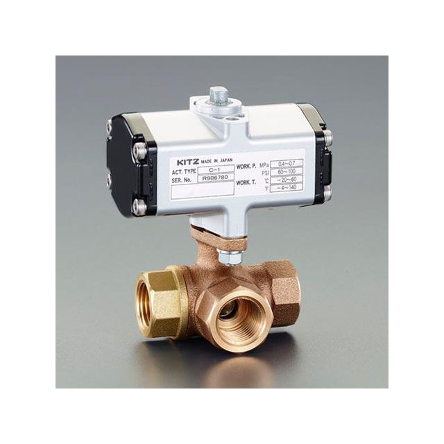 エスコ Rc 3/4” 空圧式三方ボールバルブ(青銅製) ESCO