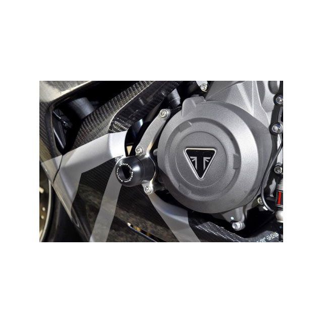「万が一の転倒でもダメージを最小限にとどめ、そのまま戦列に復帰したい」。耐久レースを戦う上で必然的な要求を満たすべく生まれたパーツが、このエンジンスライダーです。そしてこの要求はレースだけに限らず、あらゆるステージ、つまりストリートからワインディング、さらにサーキット走行をするバイクにも当てはまります。スライダーの役割はその名も通り、転倒時の衝撃を車体を滑らせることでやわらげ、ダメージを最小限にすることです。ベビーフェイスではこの基本を守るべく、スライダー本体にはプラスチック中もっとも摩擦係数が小さく、耐摩耗性にも優れたジュラコン(R)(R)(ポリアセタール・コポリマー)、もしくはある程度の柔軟性があり、ショックを吸収するポリプロピレンをNC旋盤で削り出し、使用しています。起こって欲しくない転倒。しかし起こったからにはダメージを最小限に食い止めるフレームスライダー。これからのバイクライフには欠かせないパーツです。