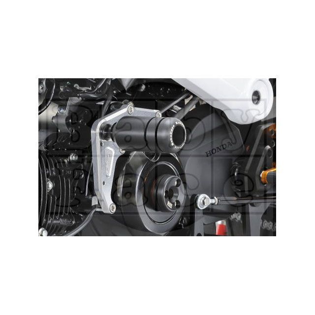 「万が一の転倒でもダメージを最小限にとどめ、そのまま戦列に復帰したい」。耐久レースを戦う上で必然的な要求を満たすべく生まれたパーツが、このエンジンスライダーです。そしてこの要求はレースだけに限らず、あらゆるステージ、つまりストリートからワインディング、さらにサーキット走行をするバイクにも当てはまります。スライダーの役割はその名も通り、転倒時の衝撃を車体を滑らせることでやわらげ、ダメージを最小限にすることです。ベビーフェイスではこの基本を守るべく、スライダー本体にはプラスチック中もっとも摩擦係数が小さく、耐摩耗性にも優れたジュラコン(R)(R)(ポリアセタール・コポリマー)、もしくはある程度の柔軟性があり、ショックを吸収するポリプロピレンをNC旋盤で削り出し、使用しています。起こって欲しくない転倒。しかし起こったからにはダメージを最小限に食い止めるフレームスライダー。これからのバイクライフには欠かせないパーツです。