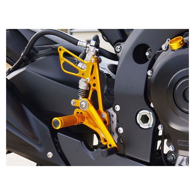 ノーマルのベースプレートを活用する、24ポジション可変タイプのバックステップキットです。ステップの取付剛性を高めるため、ペダルとステップバーを別軸にしました。これによりストリート走行はもちろんのこと、ワインディングやサーキット走行等の激しいライディング時でも、バイクの挙動をダイレクトに把握できます。両ペダルにはベアリングをダブルで組み込み、スムーズな操作感を実現しています。仕上げはシルバーもしくは、ブラック、ゴールドのアルマイトから選択していただけます。