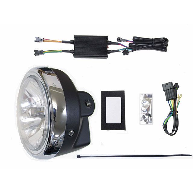 19〜W800のノーマルLEDヘッドライトLoビームは7wで点灯しておりハロゲン球と同等の明るさです。従来の電球と比べてLEDは明るいとのイメージで見てしまうとノーマルLEDの明るさにはがっかりさせられます。ノーマルLEDヘッドライトは電球式ヘッドライトと違って社外LEDに交換して明るくする事が出来ません。本製品はヘッドライトユニットを交換する事でプロテック社製H4LEDバルブの装着を可能とし、ヘッドライトが何倍にも明るく生まれ変わります。