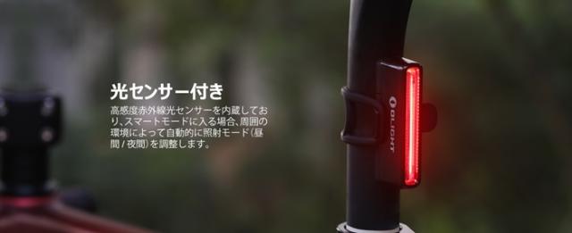 ・光センサーを備え、スマートモードに入ると、周囲の環境によりライトの照射モード(デイ/ナイト)が自動的に変更されます。